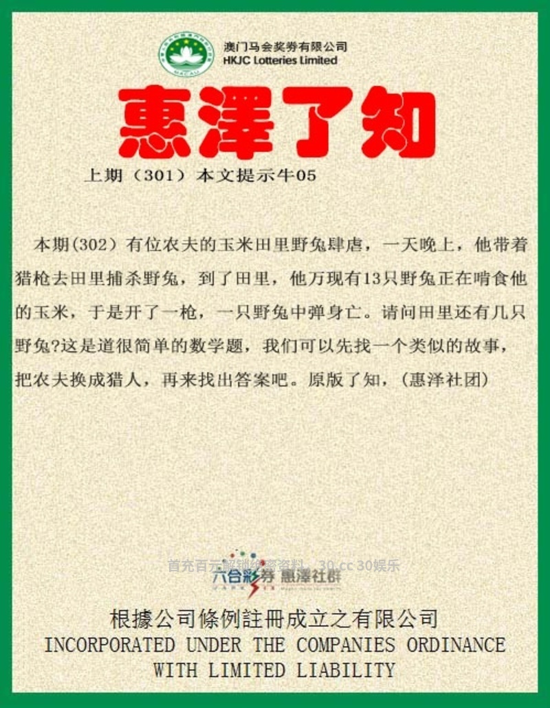301期:七肖中特☛羊狗虎马龙牛兔☚开:牛05准